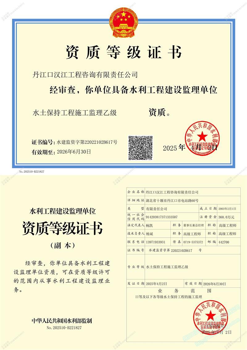 (原漢江綜合開發(fā)公司水利水電監(jiān)理中心)成立于 1989年3月,1993年6月經水利部審批成為首批注冊監(jiān)理單位 (隸屬于長江水利委員會), 注冊資本 360萬元 。公司位于湖北省十堰市丹江口市電站路。公司目前擁有水利部頒發(fā)的 水利工程施工監(jiān)理甲級 、 水土保持工程施工監(jiān)理 乙 級 資質 ;住建部頒發(fā)的 房屋建筑 、 市政公用工程監(jiān)理 乙 級資質 。 可獨立承擔 各類水利水電工程 、 一般工業與民用建筑工程監(jiān)理 , 土地整治 , 招標代理 、 技術咨詢 等業務。公司實行董事會領導下的總經理負責制,下設辦公室、經營部、財務部、工程技術部等職能部門。……